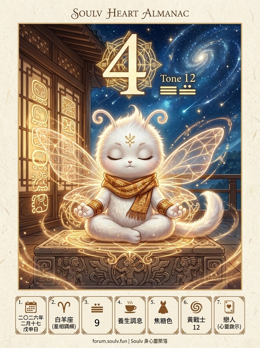 系統演算說明:本曆法之內容係基於 Soulv 整合之能量演算法產出。底層結合了當日「月相與星相能量」、「流日靈數」、「農曆二十四節氣 + 中醫子午流注」以及「日干支五行生剋」進行綜合運算,為您提供每日精準的能量調頻指引。