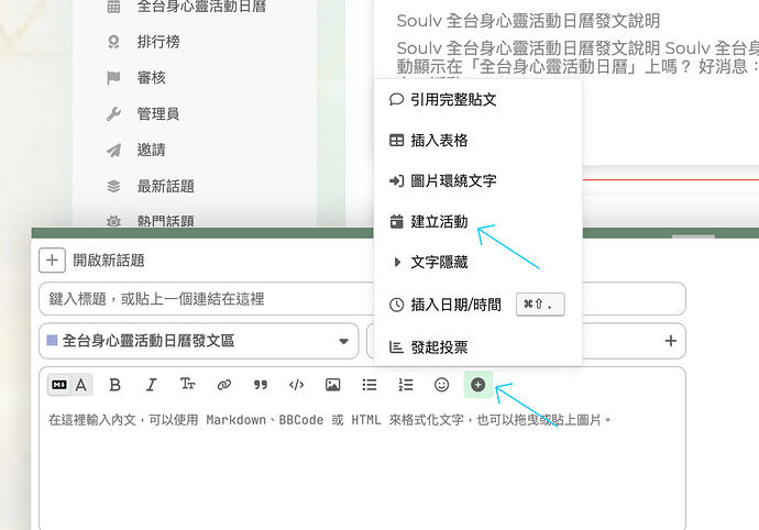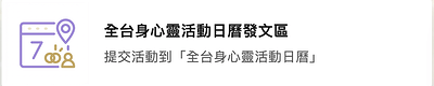 - 從首頁點擊「全台身心靈活動日曆發文區」