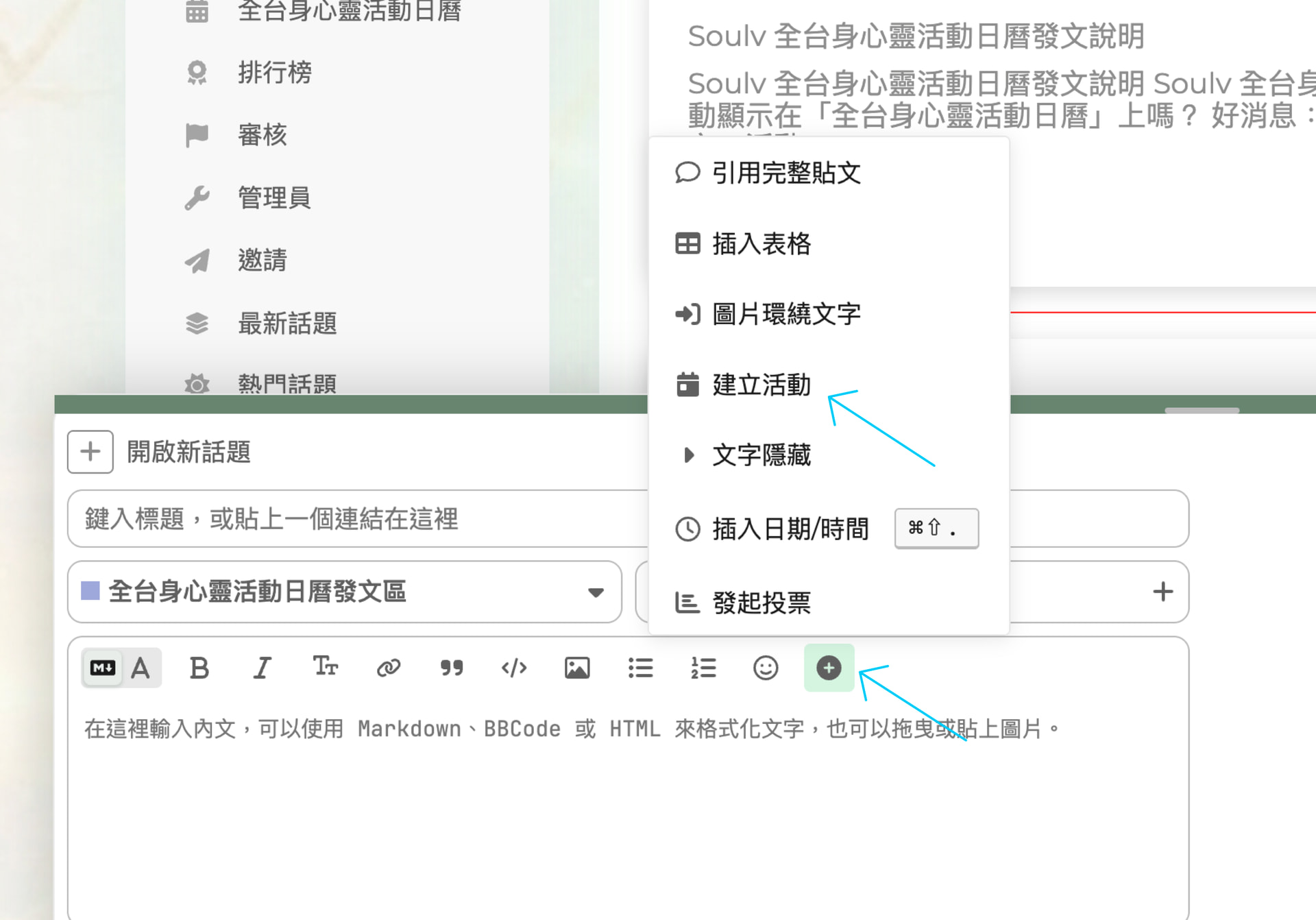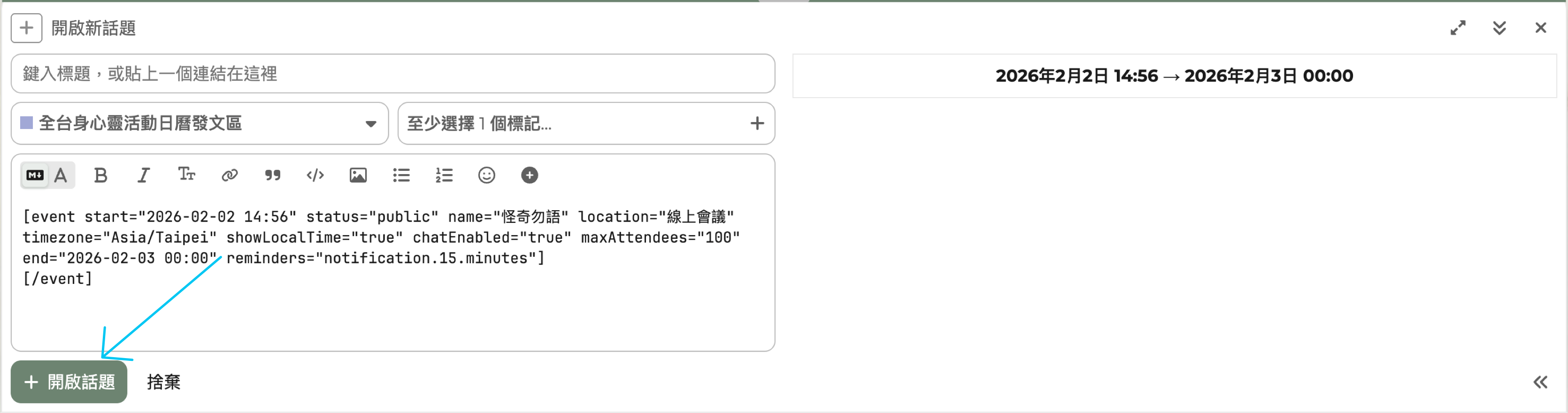 好消息:你只需要在「全台身心靈活動日曆發文區」發表一則活動貼文,活動就會自動顯示在日曆中。