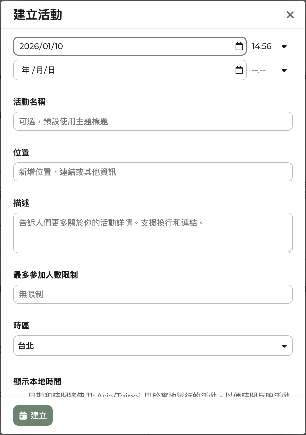 - 活動即會建立,並顯示於全台身心靈活動日曆中
