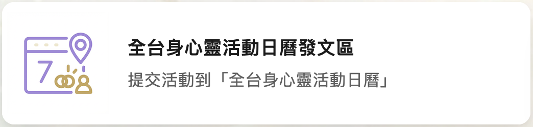 - 活動將在短時間內顯示於全台身心靈活動日曆中